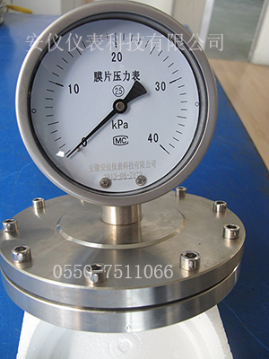 不锈钢膜片压力表,主要用于化学、石油、纺织工业中对气体、液体微小压力的测量,尤其适用于腐蚀性强、粘稠介质(非凝固非结晶)的微小压力测量。并可根据不同的测量介质选用不同材料的膜片。